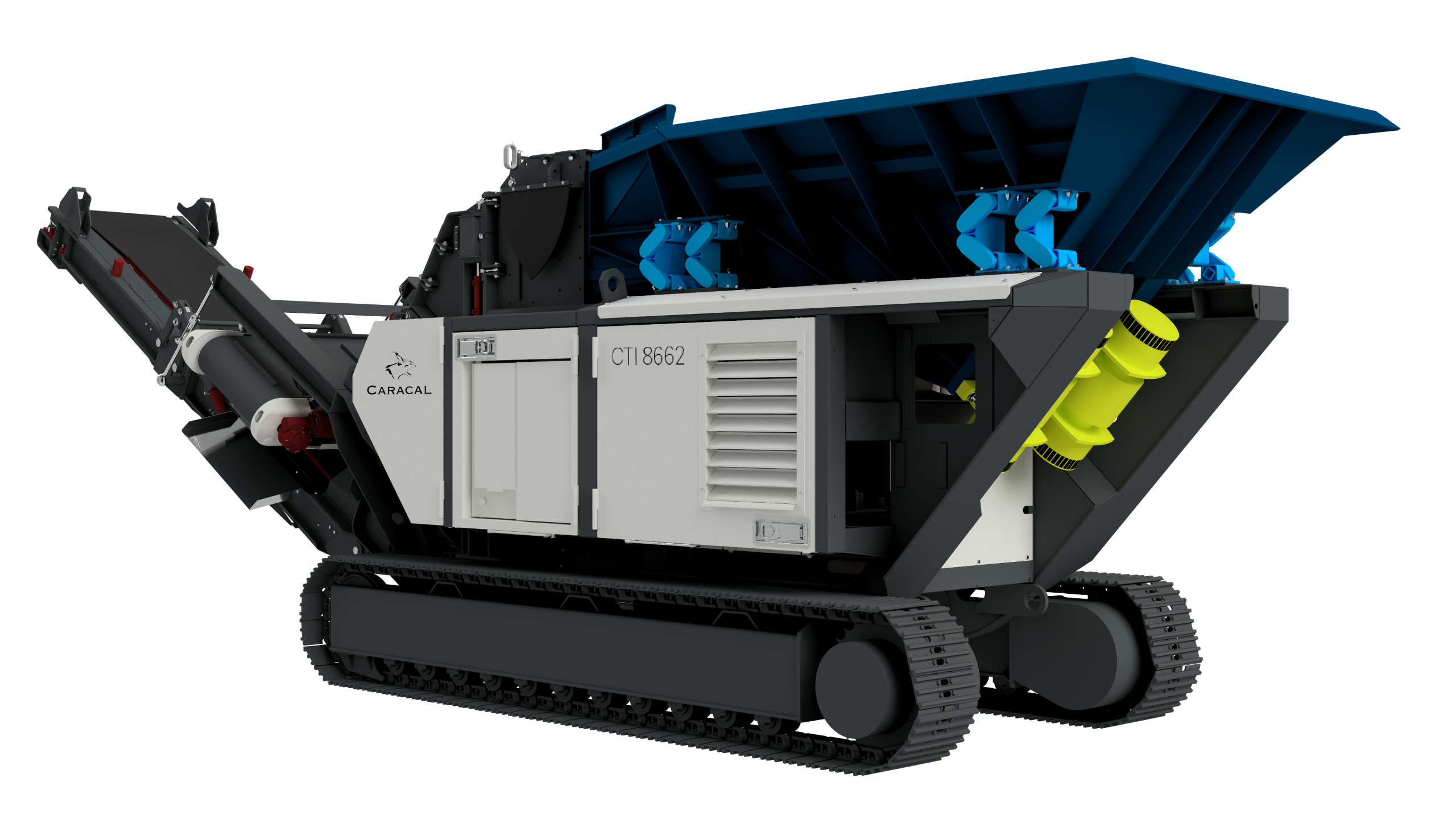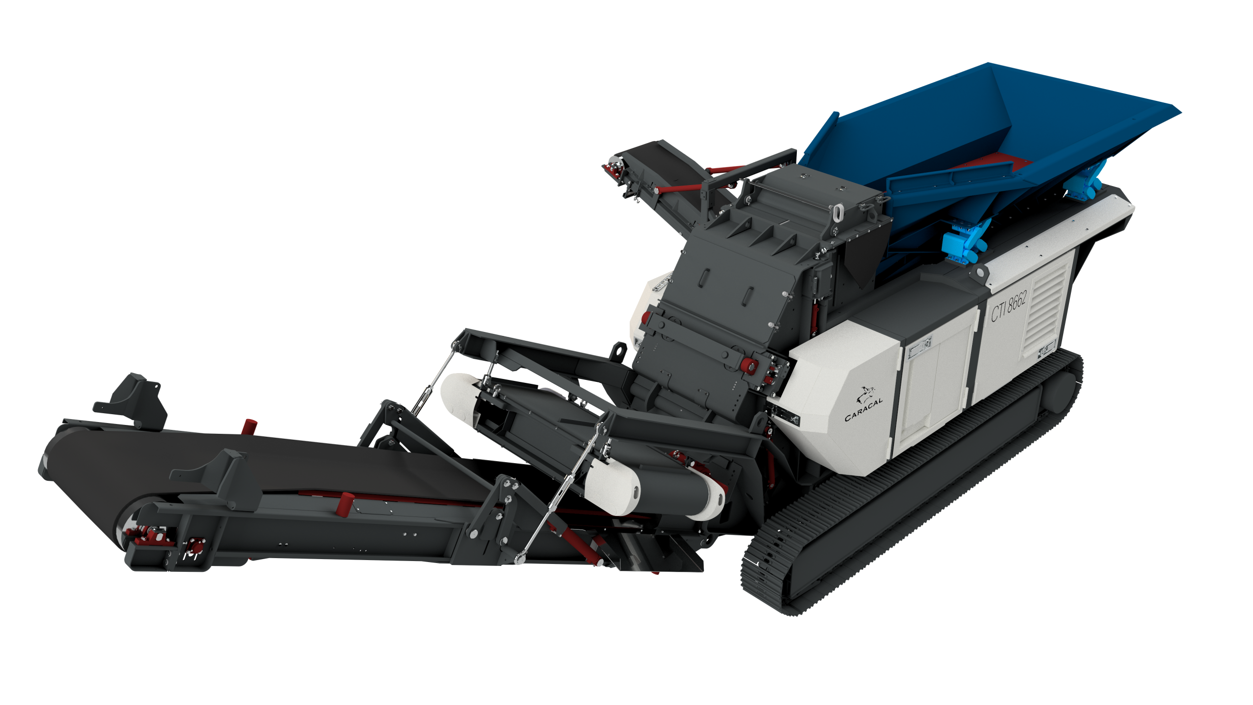 Der CTI 8662 ist ein mobiler Prallbrecher, der für den Hochleistungsbrechbetrieb in konzipiert wurde. Ausgestattet mit einem primären Grizzly-Aufgeber, einem Prallbrecher und einem Produktförderer ist dieses kompakte System bereits innerhalb von nur 15 Minuten vor Ort betriebsbereit. Ein optionaler magnetischer Separator am Produktföderer ermöglicht die Entfernung von Eisenmaterialien, während der Beschicker seine Geschwindigkeit automatisch an die Beladung des Brechers anpasst, um eine gleichbleibend hohe Effizienz zu gewährleisten. Das Gerät eignet sich sowohl für Brech-Sieb- als auch für Recycling-Anwendungen und ist besonders effektiv bei der Herstellung von Grund- und Untergrundmaterialien.